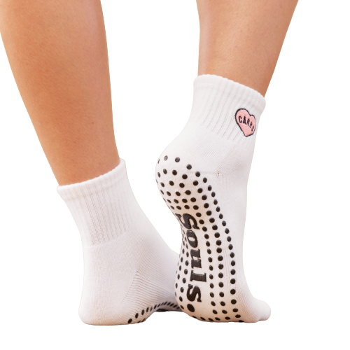 Fuel your fitness journey with a playful twist using our 'CARBS' grip socks, perfect for Pilates, Lagree, Yoga, and Barre. These unisex socks that comes in two sizes, are not just a fun statement piece but also a testament to comfort and functionality. The robust grip and versatile fit ensure you stay grounded and focused during your workouts.
