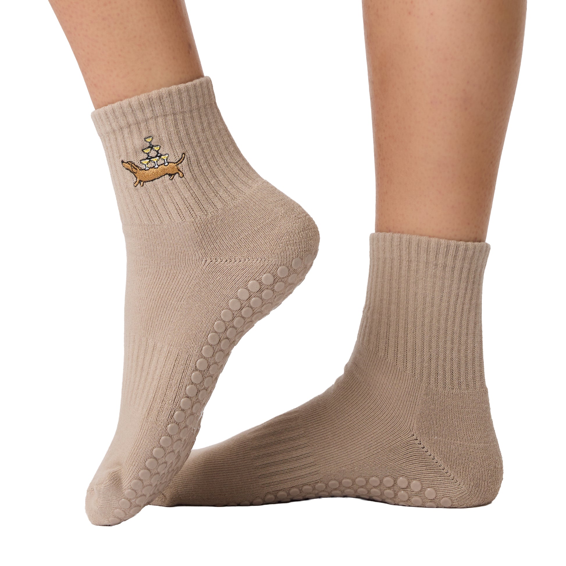 Pop, fizz, fetch—our Champagne Pup Grip Socks are the perfect pairing for dog lovers who bring a little bubbly energy into every workout. Featuring an adorable pup with a champagne glass, these socks add a playful toast to your Pilates, barre, yoga, and lounge days.