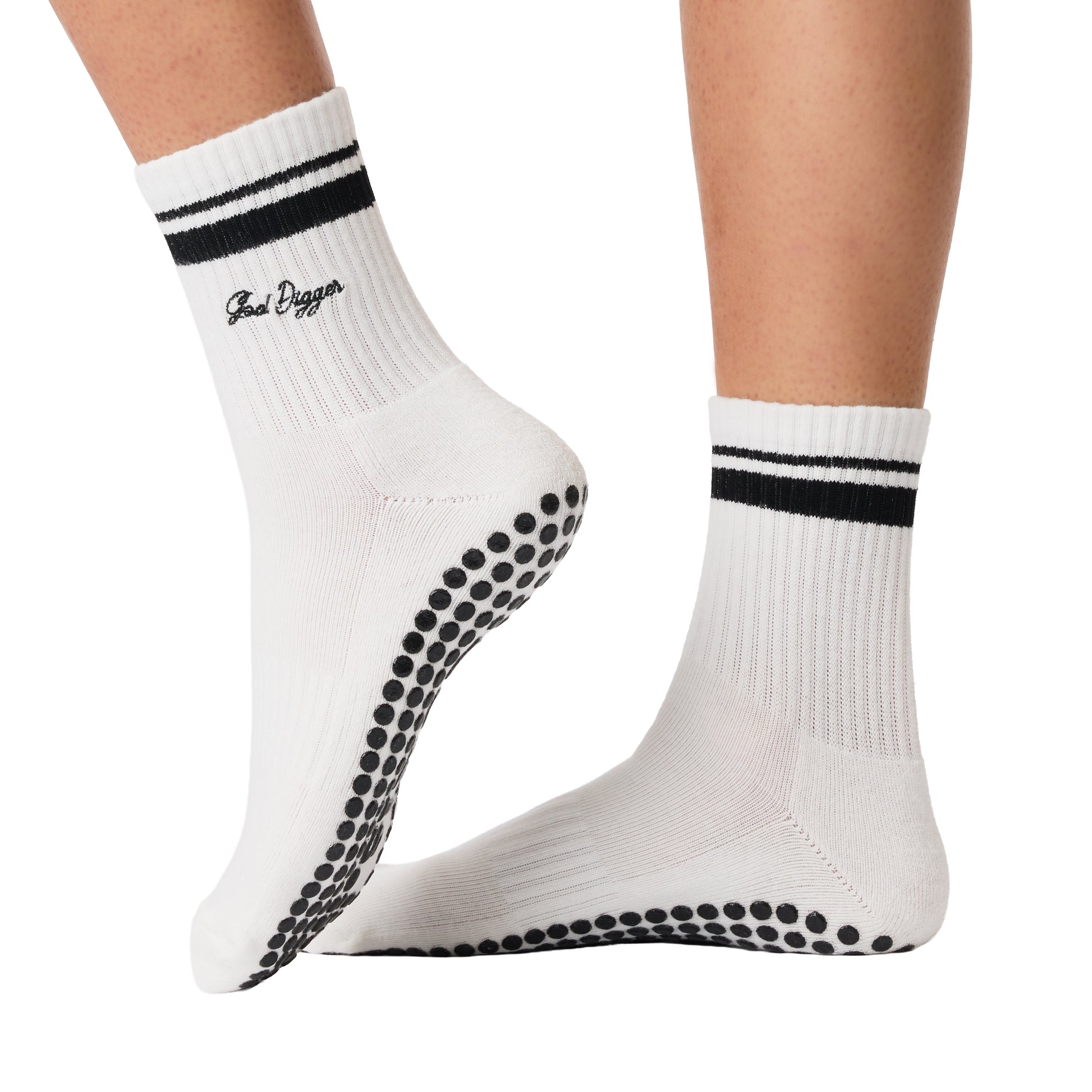 Meet the Goal Digger Grip Socks—made for the movers, the dreamers, and the ones who don’t just set goals… they crush them. With a high-traction grip sole and a comfy, stay-put fit, these socks keep you grounded through every plank, pulse, and powerhouse moment. Perfect for Pilates, barre, yoga, and leveling up your hustle—one rep at a time.